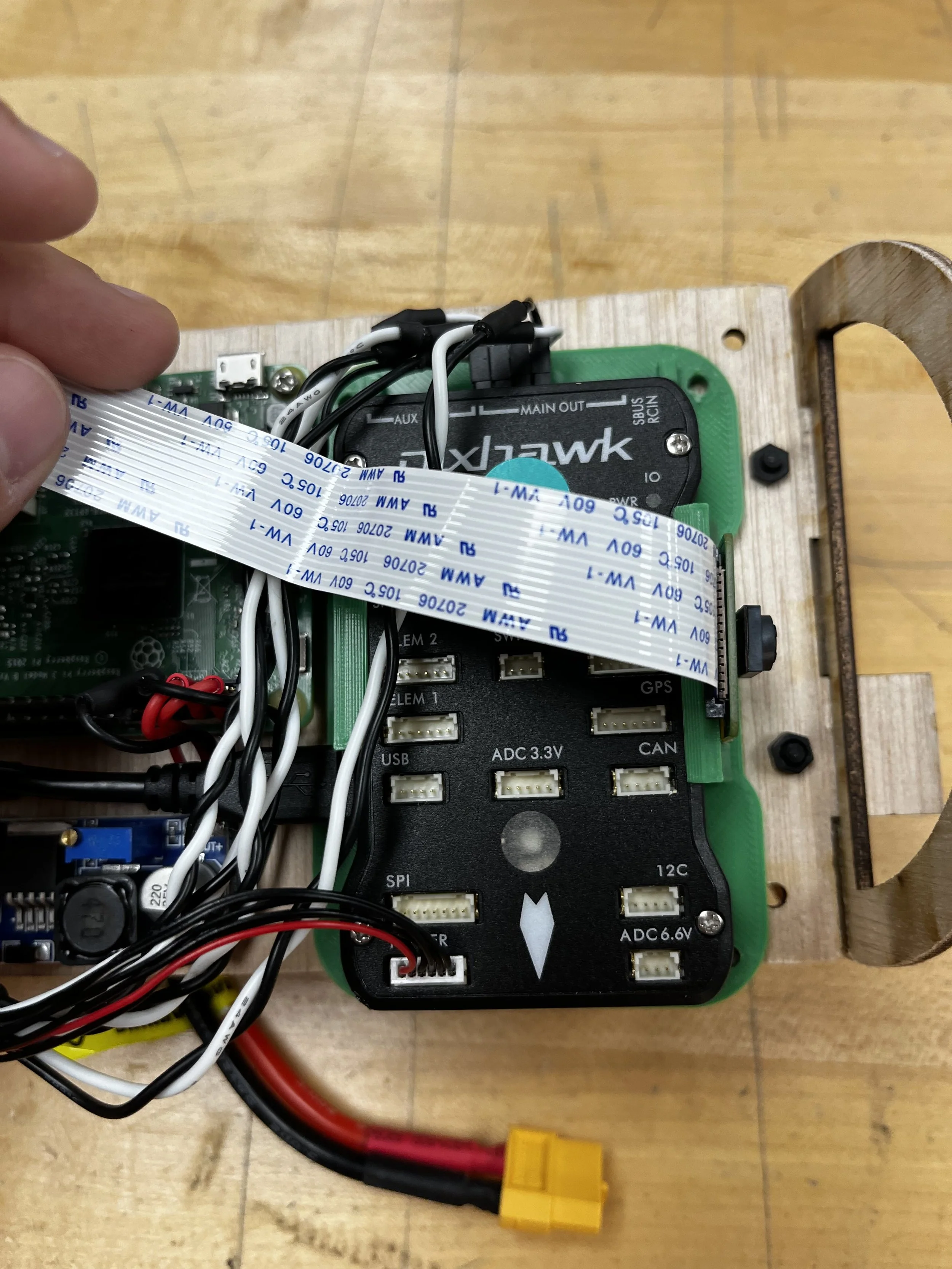 The Raspberry Pi camera successfully connected to the computer through the Fathom interface boards. However because there is not enough room for a proper mount, we modified an existing mount. The Pixhawk is located right next to the dome, and oriented so that the side mounting used to keep the Pixhawk from detaching is facing the dome. We used tape to secure the camera from sliding off of the mount.