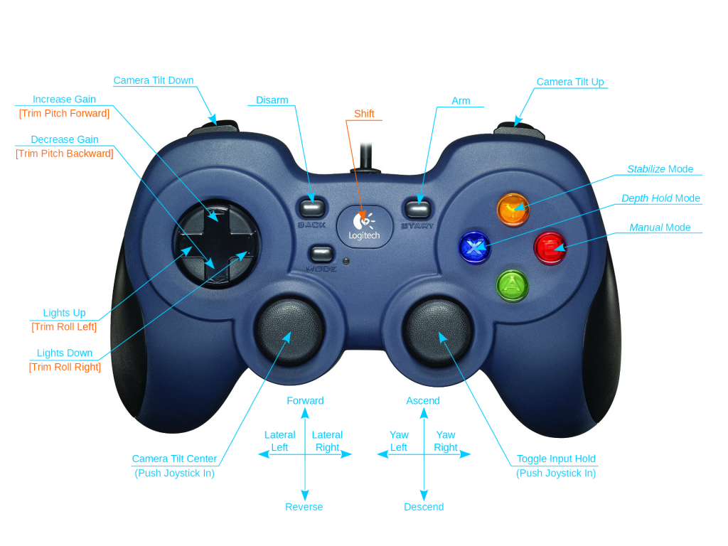 Next we had to make sure the thruster was moving according to the joystick. Since an option to change the motor assignments was not showing up in QGroundControl, we manually changed the wiring of the ESCs to reflect the controls seen in the diagram. First, the ESCs were switched to correspond to the right thrusters. Both vertical thrusters are shown to spin clockwise to ascend and counterclockwise to descend. The horizontal thrusters are shown to spin clockwise to go forwards and counterclockwise to go backwards. The video also shows moving right and left. While doing these tests, it was important to run the thrusters slowly and for short amounts of time because the thrusters are made to operate in water and not in air. If they run too fast for too long, the plastic bushings inside may melt.